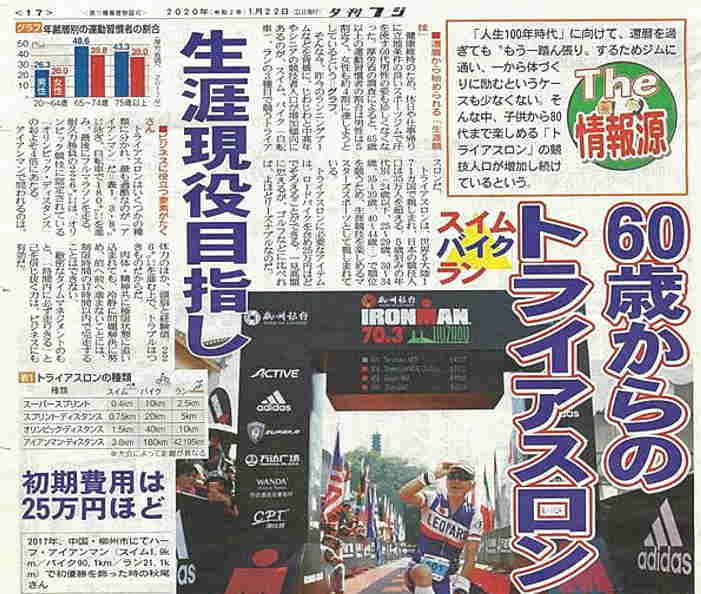 第725号 60歳からのトライアスロン! 2020年2月15日 JIC会員 秋尾 晃正氏 トライアスロンの歴史や層の厚さで、日本の若い年代層が世界選手権大会で優勝し、 世界一になることは非常に困難です。だが、人生100歳
