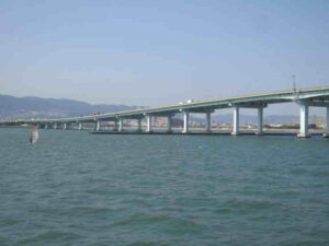 深江浜-芦屋浜-西宮浜-甲子園浜-鳴尾浜を結ぶ四つの大橋を、阪神高速湾岸線に沿って雄大な景色を眺めながら往復を走ります。ヨットハーバー(港)や美しい芦屋・西宮の街並みが眼下に、そして遠くは六甲全山や関西国際空港まで遠望できます。