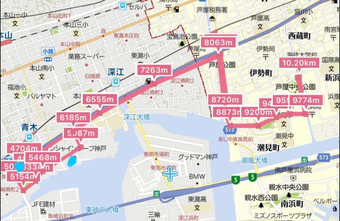 集合場所(スタート)は芦屋中央公園グラウンド。