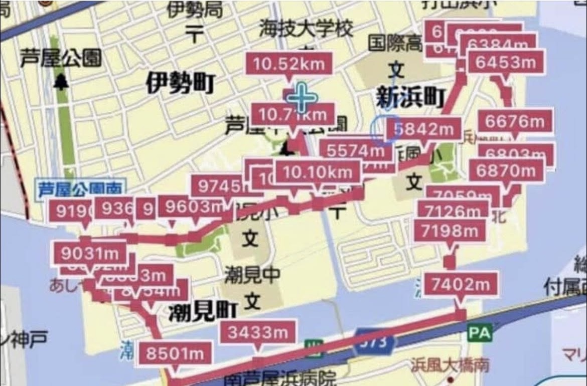 集合場所(スタート)は芦屋中央公園グラウンド。