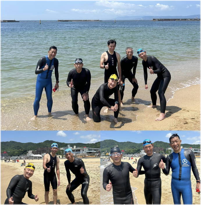 須磨海水浴場でオープンウォータースイムとランニングを楽しんだ。水温もGood!